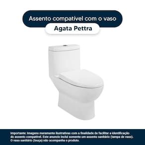 Detalhes e Cuidados Especiais: * Cor: Branca * Compatibilidade: Modelo Ágata da marca Pettra * Conteúdo da Embalagem: Assento sanitário, ferragem completa, parafusos de fixação e instruções de instalação. * Fabricante do Assento Sanitário: Pontto Lavabo (enviado na caixa conforme foto no anúncio).