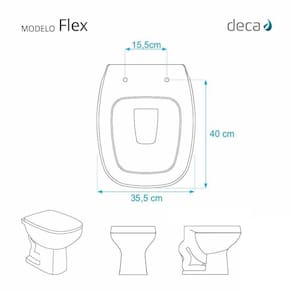 Este assento sanitário é compatível para uso em vaso sanitário Deca modelo Flex com ou sem caixa acoplada (é compatível com os dois tipos de vasos).