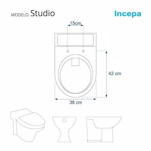 Este assento sanitário é compatível para uso em vaso sanitário Incepa modelo Studio com ou sem caixa acoplada.