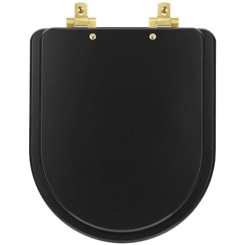 Tampa De Vaso Laqueado Com Fechamento Lento Link-lk Preto Fosco Para Louça Deca Com Ferragem Dourada
