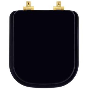 Tampa de Vaso Laqueado Com Fechamento Lento Quadra Preto para Louça Deca com Ferragem Dourada