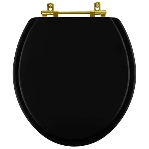 Tampa de Vaso Laqueado Convencional Preto para bacia Celite com Ferragem Dourada