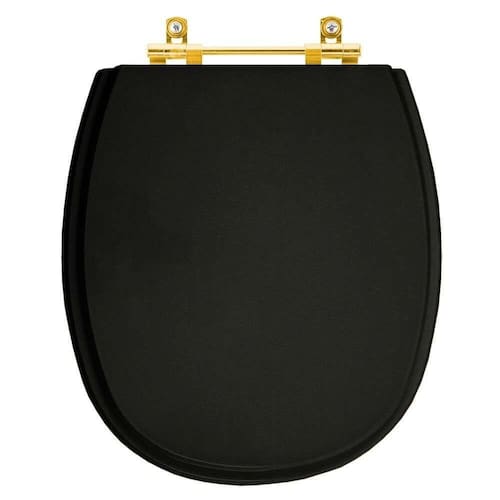 A Tampa de Vaso Laqueado Fast Preto para bacia Deca com Ferragem Dourada é a opção ideal para quem busca combinar funcionalidade com elegância em seu banheiro.