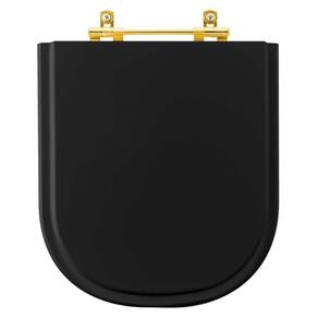 Tampa De Vaso Laqueado Life Preto Para Bacia Celite Com Ferragem Dourada