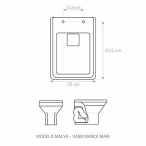 Assento Sanitário tampa de vaso fabricado em madeira MDF com pintura laqueada, com proteção raios UV, que garante excelente acabamento e durabilidade. Compatível com vasos bacias/louças sanitários com ou sem caixa acoplada. Tem calços de PVC instalados na tampa e no assento para proporcionar estabilidade ao uso, pois distribui o peso uniformemente sobre a louça sanitária. Montagem simples e fácil. Possui ferragem em alumínio anodizado que não enferruja/oxida e oferece muita resistência. O assento é acompanhado por parafusos para instalação. Embalagem dupla reforçada garante o recebimento do produto totalmente protegido. Especificações: - Dimensões da caixa: largura: 51,50cm. Altura: 4,00cm comprimento: 38,00cm - Peso do produto: 1,98kg - Acabamento: brilhante - Uso: este assento é adequado para uso na louça Mari modelo Malva - Garantia: 3 meses - Itens inclusos: Tampa e assento com calços de PVC, ferragem inoxidável, embalagem duplamente reforçada. Contém todos os parafusos e encaixes para instalação, sendo necessária somente uma chave de fenda para instalar o produto na louça sanitária. Instalação:posicione o produto, devidamente centralizado, em cima do vaso sanitário. Sem desmontar a ferragem, insira as buchas de borracha dentro dos furos da bacia sanitária. Utilizando uma chave de fenda, aperte o parafuso no sentido horário até que o assento esteja firme no vaso. Manutenção: recomendamos a limpeza periódica com pano levemente umedecido com sabão neutro. Não usar esponjas abrasivas ou palha de aço nem qualquer tipo de produto químico. Marca: Lojarocca Ean: 7898424211873
