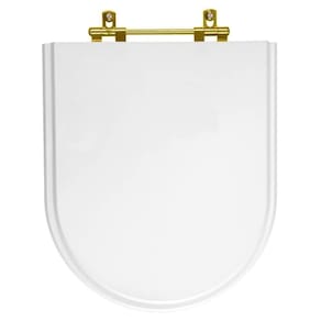Tampa De Vaso Meridian Branco Para Bacia Roca Com Ferragem Dourada Tampa de Vaso Sanitário Meridian Branco para bacia Roca Com Ferragem Dourada. Conforto, qualidade e elegância para o seu banheiro. Este Assento Sanitário é produzido em MDF com diversas camadas de pintura laqueada, com acabamento brilhante e ferragem dourada que não enferruja. É compatível para uso em louça sanitária com ou sem caixa acoplada. Instalação rápida e fácil, acompanha os parafusos de fixação e basta apenas uma chave de fenda para instalar no vaso. Entrega garantida e rastreada com embalagem dupla reforçada.