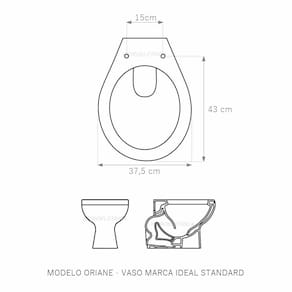Assento Sanitário tampa de vaso fabricado em madeira MDF com pintura laqueada, com proteção raios UV, que garante excelente acabamento e durabilidade. Compatível com vasos bacias/louças sanitários com ou sem caixa acoplada. Tem calços de PVC instalados na tampa e no assento para proporcionar estabilidade ao uso, pois distribui o peso uniformemente sobre a louça sanitária. Montagem simples e fácil. Possui ferragem em alumínio anodizado que não enferruja/oxida e oferece muita resistência. O assento é acompanhado por parafusos para instalação. Embalagem dupla reforçada garante o recebimento do produto totalmente protegido. Especificações: - Dimensões da caixa: largura: 51,50cm. Altura: 4,00cm comprimento: 38,00cm - Peso do produto: 1,98kg - Acabamento: brilhante - Uso: este assento é adequado para uso na louça Ideal de modelo Oriane - Garantia: 3 meses - Itens inclusos: Tampa e assento com calços de PVC, ferragem inoxidável, embalagem duplamente reforçada. Contém todos os parafusos e encaixes para instalação, sendo necessária somente uma chave de fenda para instalar o produto na louça sanitária. Instalação: posicione o produto, devidamente centralizado, em cima do vaso sanitário. Sem desmontar a ferragem, insira as buchas de borracha dentro dos furos da bacia sanitária. Utilizando uma chave de fenda, aperte o parafuso no sentido horário até que o assento esteja firme no vaso. Manutenção: recomendamos a limpeza periódica com pano levemente umedecido com sabão neutro. Não usar esponjas abrasivas ou palha de aço nem qualquer tipo de produto químico.