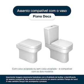 Compatível para uso em vaso sanitário Deca modelo Piano com ou sem caixa acoplada.