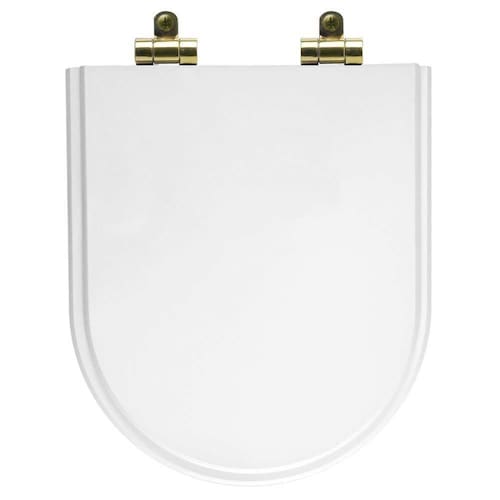 Tampa de Vaso Poliéster Com Amortecedor Carrara Branco para Bacia Deca com Ferragem Dourada