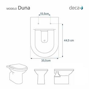 Compatível para uso em vaso sanitário Deca modelo Duna com ou sem caixa acoplada.