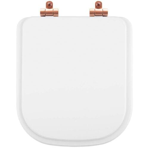 Tampa de Vaso Poliéster Com Amortecedor Piano Branco para Bacia Deca com Ferragem Rose Gold