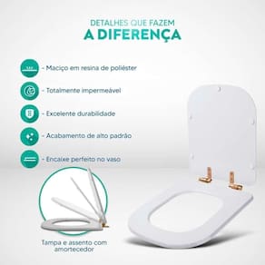 Durabilidade e Resistência: Fabricado em resina maciça de poliéster, este assento sanitário é altamente resistente e totalmente impermeável.