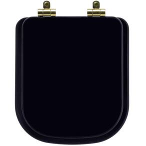 Tampa De Vaso Poliéster Com Amortecedor Quadra Preto Para Bacia Deca Com Ferragem Dourada