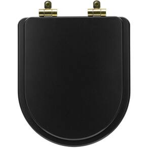 Tampa De Vaso Poliéster Com Amortecedor Smart Onix (preto Fosco) Para Bacia Celite Com Ferragem Dourada