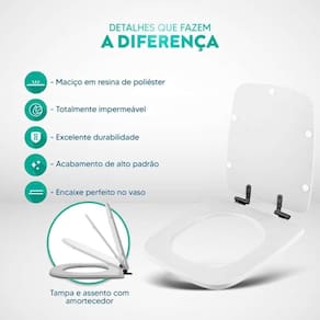 Durabilidade e Resistência: Fabricado em resina maciça de poliéster, este assento sanitário é altamente resistente e totalmente impermeável.