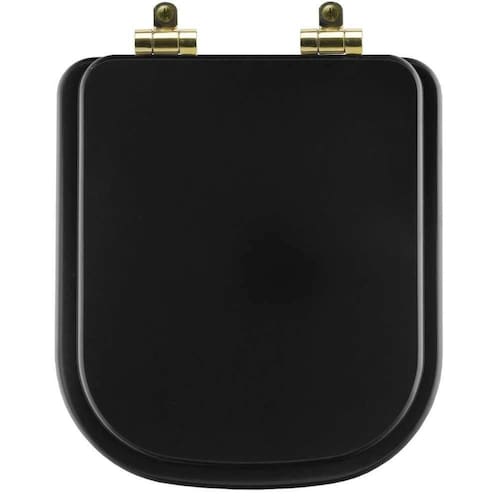 Tampa De Vaso Poliéster Com Fechamento Lento Quadra Preto Fosco Para Louça Deca Com Ferragem Dourada
