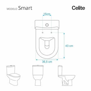 Compatível para uso em vaso sanitário Celite modelo Smart com ou sem caixa acoplada.