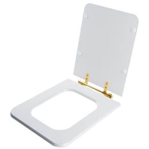 Itens inclusos: assento e tampa de resina de poliéster e ferragem completa na cor dourada. Produto completo, pronto para instalar no vaso sanitário.