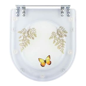 Tampa De Vaso Poliéster Decorada Borboleta Calypso Transparente Para Louça Incepa Tampa de Vaso Poliéster Decorada Borboleta Calypso Transparente para louça Incepa é a escolha perfeita para seu banheiro. O Assento Sanitário Poliéster é considerado o melhor tipo de assentos sanitários do mercado pelo seu acabamento impecável e excelente durabilidade. Este assento de vaso sanitário Calypso Transparente é produzido em resina maciça de poliéster. O poliéster é uma resina semelhante ao acrílico, só que mais robusta / resistente. Por isso, é totalmente impermeável, pode ser lavado com água à vontade. Fácil de limpar. Não acumula sujeira.