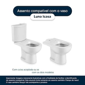Compatível com o vaso sanitário Icasa modelo Luna com ou sem caixa acoplada.