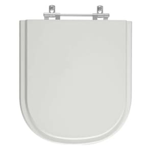 O encaixe do assento sanitário no vaso é feito por uma ferragem metálica que não oxida e não enferruja.
