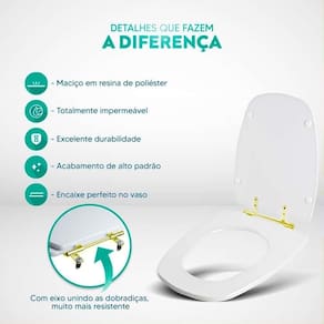 Durabilidade e Resistência: Fabricado em resina maciça de poliéster, este assento sanitário é altamente resistente e totalmente impermeável.