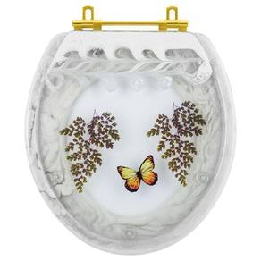 Tampa de Vaso Poliester Oval Branco Decorado Borboleta Amarela Com Ferragem Dourada