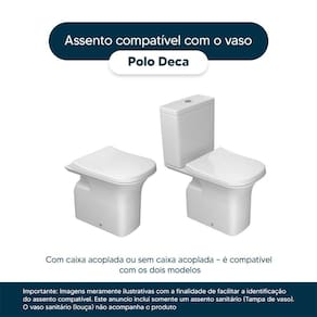 Compatível com o vaso sanitário Deca modelo Polo com ou sem caixa acoplada.