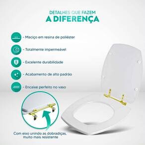 Durabilidade e Resistência: Fabricado em resina maciça de poliéster, este assento sanitário é altamente resistente e totalmente impermeável.
