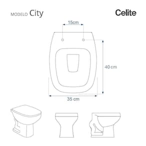Compatível com o modelo City da marca Celite, este assento se encaixa perfeitamente no vaso sanitário.