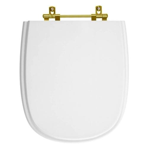 Itens inclusos: assento e tampa em madeira MDF com pintura laqueada com ferragem dourada em alumínio anodizado.