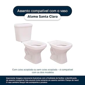 Instalação Simples e Rápida: Com todos os parafusos e componentes necessários incluídos, a instalação é rápida e descomplicada. Seu novo assento estará pronto para uso em questão de minutos. Desenvolvido especificamente para o modelo Alamo da marca Santa Clara, com ou sem caixa acoplada, proporciona um encaixe perfeito, oferecendo estabilidade e conforto durante o uso.