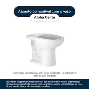 Instalação Simples e Rápida: Com todos os parafusos e componentes necessários incluídos, a instalação é rápida e descomplicada. Seu novo assento estará pronto para uso em questão de minutos. Desenvolvido especificamente para o modelo Aloha da marca Celite, com ou sem caixa acoplada, proporciona um encaixe perfeito, oferecendo estabilidade e conforto durante o uso.