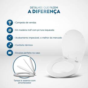 Durabilidade e Resistência: Fabricado em MDF com camadas de pintura laqueada, este assento oferece não apenas beleza, mas também conforto térmico e alta resistência. Seu acabamento impecável adiciona um toque de classe ao seu banheiro.