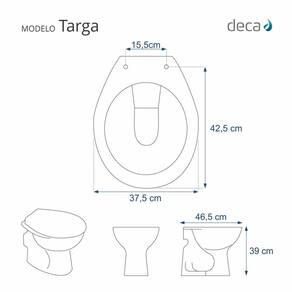 Este assento sanitário é compatível para uso em vaso sanitário Deca modelo Targa com ou sem caixa acoplada.