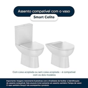 Instalação Simples e Rápida: Com todos os parafusos e componentes necessários inclusos, a instalação é rápida e descomplicada. Seu novo assento estará pronto para uso em questão de minutos. Desenvolvido especificamente para o modelo Smart da marca Celite, com ou sem caixa acoplada, proporciona um encaixe perfeito, oferecendo estabilidade e conforto durante o uso.