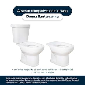 Instalação Simples e Rápida: Com todos os parafusos e componentes necessários inclusos, a instalação é rápida e descomplicada. Seu assento estará pronto para uso em questão de minutos. Desenvolvido especificamente para o modelo Donna da marca Santamarina, com ou sem caixa acoplada, proporciona um encaixe perfeito, oferecendo estabilidade e conforto durante o uso.