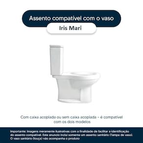 Instalação Simples e Rápida: Com todos os parafusos e componentes necessários inclusos, a instalação é rápida e descomplicada. Seu novo assento estará pronto para uso em questão de minutos. Desenvolvido especificamente para o modelo Iris da marca Mari, com ou sem caixa acoplada, proporciona um encaixe perfeito, oferecendo estabilidade e conforto durante o uso.