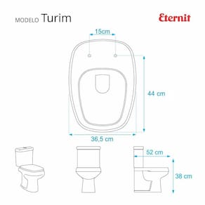 Assento Sanitário Turim Branco Para Bacia Sanitária Eternit. Conforto qualidade e elegância para o seu banheiro. Este produto Assento Sanitário é fabricado em MDF com pintura laqueada, acabamento brilhante e ferragem metálica que não oxida. É compatível para uso em louça sanitária com ou sem caixa acoplada. Instalação rápida e fácil, acompanham os parafusos de fixação e com apenas uma chave de fenda para montar. Entrega garantida e rastreada com embalagem dupla reforçada. Distância entre centros dos furos da louça: 15cm. Acabamento: brilhante. Dicas: Itens inclusos: assento e tampa em madeira MDF com pintura laqueada com ferragem instalada. Limpeza: recomenda-se a limpeza com pano úmido e sabão neutro e não utilizar produtos abrasivos ou químicos. Instalação: Não é necessário desmontar nenhuma peça do produto. Posicionar e encaixar na louça sanitária os dois parafusos com as borrachas pretas dentro dos furos do vaso. Aperte com a chave de fenda no sentido horário até ficar firme. Importante: este anúncio inclui somente o produto conforme descrição acima. Todos os elementos decorativos das fotos não estão inclusos. Observação: O código 6LPF gravado na bacia sanitária corresponde ao fluxo de água de uma descarga e não indica o modelo da mesma.