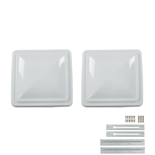 Cobertura de ventilação de teto trailer trailer adequado para Ventline pré-2008 e pino estilo Elixir 1994 e mais recente, branco, 2 peças - Aplicabilidade: adequado para Ventline pré-2008 e pino estilo Elixir 1994 e mais recente. Os acessórios não são montados. - Design exclusivo: projetado para aberturas de exaustão de 35,5 cm x 35,5 cm para trailers, teto, sótão e cúpula. Perfeito para campistas, motorhomes e trailers. - Materiais duráveis: feito de material PE de alta qualidade, leve e resistente ao desgaste, que pode bloquear efetivamente os raios ultravioleta e evitar a entrada de água da chuva e folhas. O suporte de metal melhora ainda mais a durabilidade e a vida útil. - Função: ajuda você a manter o ar de ventilação do banheiro do trailer fresco, vazamento de chuva isolado e evitar a entrada de calor dentro do trailer. - Processo avançado: este produto é fabricado por tecnologia avançada para atender às suas necessidades em termos de modelo e tamanho. O design específico da aplicação garante o ajuste correto. Projetos especializados geram melhorias significativas e notáveis ao seu carro.