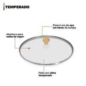Distribuído por feheros shop Tampa de vidro temperado 20/21 cm avulsa para panela, frigideira ou caçarola com puxador de madeira Atenção Antes de comprar, verifique as medidas da sua panela, frigideira ou caçarola. Esta tampa foi desenvolvida para utensílios com borda entre 20 e 21 cm de diâmetro externo. Certifique-se de medir corretamente para garantir o encaixe adequado. O uso da tampa em utensílios com medidas incompatíveis pode resultar em má vedação ou até em acidentes. Vidro temperado é mais resistente que o vidro comum, mas ainda assim é frágil a quedas ou impactos laterais. Não exponha a tampa a choques térmicos, como colocá-la quente em contato com água fria. Informações do produto Garanta mais segurança, praticidade e controle no preparo das suas receitas com a tampa de vidro temperado avulsa 20/21 cm compatível com diversos modelos de panelas, frigideiras e caçarolas, essa tampa é ideal para substituir tampas perdidas ou danificadas sem precisar trocar o utensílio inteiro. Possui puxador ergonômico em madeira, que não esquenta facilmente e oferece toque confortável durante o uso. O vidro temperado transparente permite acompanhar o cozimento dos alimentos sem precisar remover a tampa, economizando tempo e energia. Atenção: os tamanhos das tampas de vidro são sempre números pares ex: 16 cm; 18 cm; 20 cm, mas corresponde duas medidas, assim sendo o tamanho 16 cm é 16/17 o tamanho 18 cm é 18/19 o tamanho 20 cm é 20/21 e assim por diante. Especificações técnicas - compatibilidade universal: ideal para panelas, frigideiras e caçarolas com diâmetro externo de 20 a 21 cm, sendo uma excelente opção de reposição para diversos modelos e marcas. - vidro temperado de alta resistência: fabricada em vidro temperado, que oferece maior segurança e resistência ao calor em comparação ao vidro comum. - aro em aço inoxidável: conta com borda reforçada em inox, que proporciona melhor vedação e durabilidade, prevenindo deformações com o uso prolongado. - puxador em madeira natural: o pegador em madeira, além de confortável ao toque, não aquece com facilidade, evitando queimaduras durante o manuseio. - visualização do cozimento: o vidro transparente permite acompanhar o preparo dos alimentos sem precisar retirar a tampa, mantendo o calor e os sabores. - fácil de limpar: pode ser higienizada com esponja macia e sabão neutro, sem comprometer os materiais, garantindo longa vida útil. - prática: solução econômica e funcional para reposições de tampas perdidas ou danificadas, sem necessidade de trocar o jogo de panelas completo. Ficha técnica do produto - diâmetro interno: 19,7 cm - diâmetro externo: 21 cm - material: vidro temperado - puxador: madeira de alta qualidade - anel: aço em torno da tampa - abertura para saída de vapor Antes do primeiro uso - lave a tampa com detergente neutro e esponja macia - seque bem antes de usar - não utilize em forno ou micro-ondas - não leve diretamente ao fogo Após o uso - aguarde a tampa esfriar antes de lavar - lave manualmente com sabão neutro - evite esponjas de aço ou produtos abrasivos que possam riscar o vidro - não armazene com umidade para preservar o puxador de madeira Itens inclusos - 01 tampa de vidro temperado 20/21 cm com aro inox - 01 puxador de madeira Todas as fotos são reais dos produtos, qualquer dúvida estamos à disposição Dúvidas frequentes 01 - os produtos são novos Tem R: sim, o produto é novo e possui legal de 90 dias contra defeitos de fabricação. 03 - como faço para acompanhar o envio R: após a postagem, você receberá o código de rastreamento. Basta acessar sua conta e verificar os detalhes da compra para acompanhar cada etapa da entrega.
