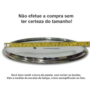 Características: • Vidro temperado • Borda Inoxidável • Pomel Baquelite antitérmico • Com furo para saída do ar quente • Para utensílios com 14cm de diâmetro (encaixe)