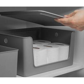 Com a tampa para cestos Flow é possível utilizar as caixas organizadoras empilhadas, otimizando o espaço do seu ambiente. Além disso, as tampas são excelentes escolhas para manter seus objetos e produtos organizados e protegidos de poeira e umidade. A tampa Flow possui cantos arredondados que facilitam a limpeza, proporcionando o encaixe perfeito com a caixa da mesma linha.