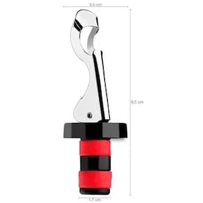 Garantia: 90 dias / Peso: 42g / Cor predominante: inox, preto e vermelho / Ref: 7898607403811 Dimensões: 3,5cm (C) x 1,7cm (D) x 9,5cm (A) Cuidados: não lavar com materiais abrasivos. Lave com água e sabão neutro; Secar após lavagem. Conteúdo: 2 tampas. Material: aço inox e polipropileno. Instruções de uso: com a lavanca na posição vertical, insira no bocal da garrafa, para vedar basta baixar a lavanca. Para remover, levante a lavanca.