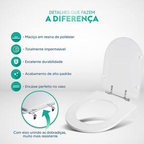 Limpeza: recomenda-se a limpeza do assento sanitário poliéster com água e sabão neutro, não utilizar produtos abrasivos.
