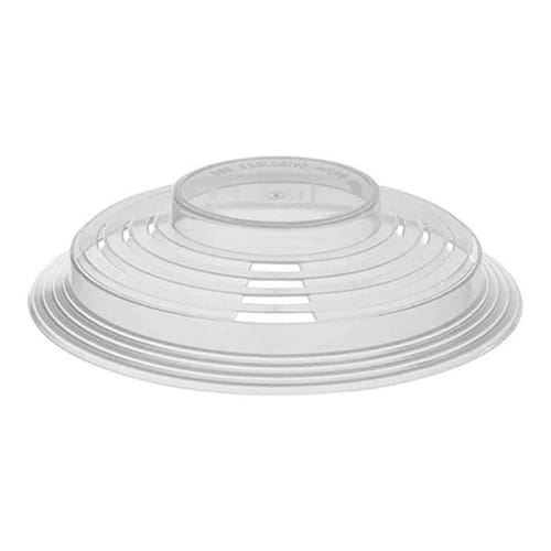 Informações adicionais Possuí aberturas para eliminar o vapor Composição: plástico Validade: indeterminada Cor: transparente Medidas aproximadas: 6cm altura x 25,5cm diâmetro Peso aproximado: 60g