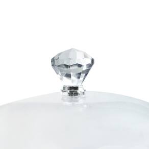 A tampa é fabricada em plástico transparente de alta qualidade, permitindo uma visualização clara do conteúdo sem a necessidade de removê-la. Isso facilita a identificação rápida dos alimentos armazenados e adiciona um toque moderno e clean à sua cozinha. A tampa protetora de alimento de plástico transparente é um utensílio prático e elegante, ideal para conservar alimentos e protegê-los contra poeira, insetos e outros contaminantes. Um dos destaques desta tampa é o puxador detalhado em forma de diamante, localizado no centro da parte superior. Este puxador não só contribui para a estética sofisticada do utensílio, mas também proporciona uma pegada firme e confortável, tornando a remoção da tampa fácil e segura.