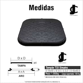 Tampa Pvc T33 Gordura Esgoto Elétrica Passagem Simples ESPECIFICAÇÕES DO PRODUTO Características Técnicas: Projetado para tampar, caixas de passagem de tubulação, esgoto, águas pluviais, água potável, redes de telecomunicações, eletricidade entre outros. Facilitando o acesso a válvulas, registros, quadro de Distribuição. Modelo: Simples. Indicação: Caixas de Passagem, elétrica, esgoto e outros. Material: PVC. : 30 dias contra defeito de fabricação. Peso: 2,800 KG Carga Máxima Nominal por eixo: 150 KG Medidas: 44X49cm Não suporta passagem de veículos, somente pedestre. Marca: Não Informado