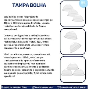 Garantindo proteção contra vazamentos e derramamentos. Fabricadas com material durável, as tampas bolha são perfeitas para servir bebidas, deixar suas encomendas mais seguras na hora de transportar e mantendo a qualidade dos produtos armazenados.