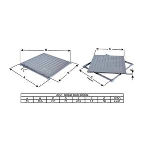 01 Tampa Tampão Chão Alumínio Fundido Quadrado Simples 50x50cm.